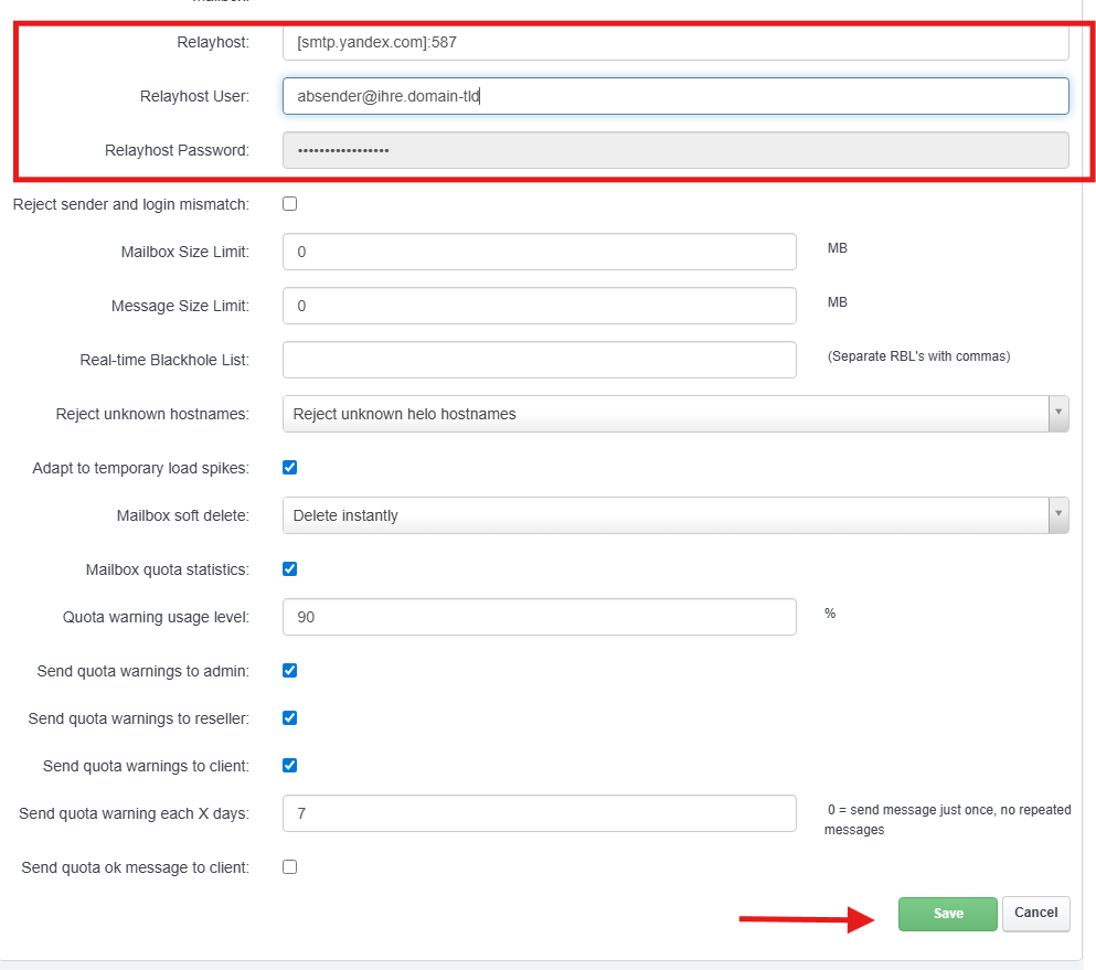 3) Server (CLI) → Zugangsdaten für den Smarthost