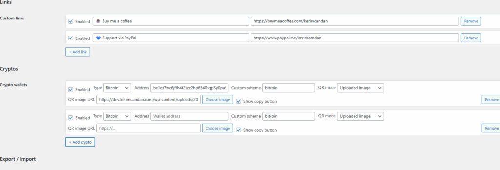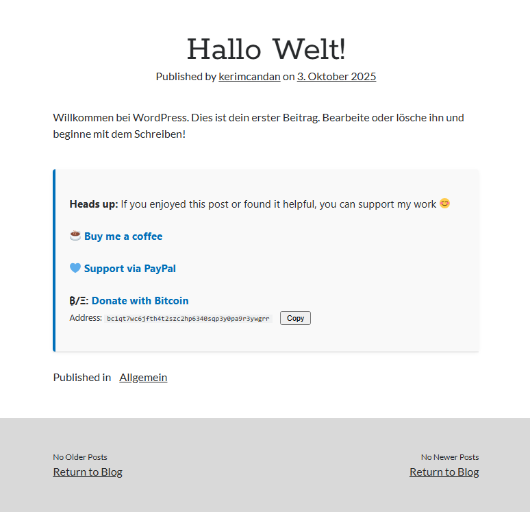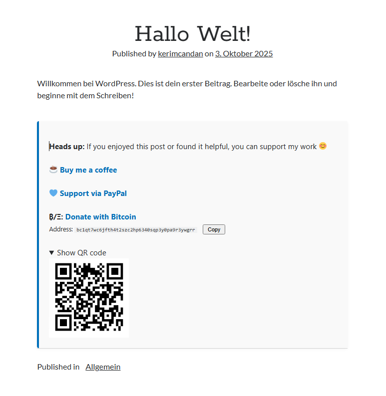 Ich wollte eine kleine, saubere Lösung, die ohne Ballast auskommt – und die typischen Use-Cases (Kaffee-Link, PayPal, Krypto-Spenden) abdeckt. Rückmeldungen & Pull-Requests sind willkommen!