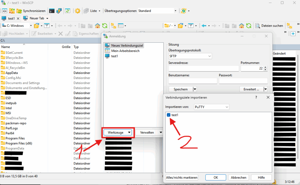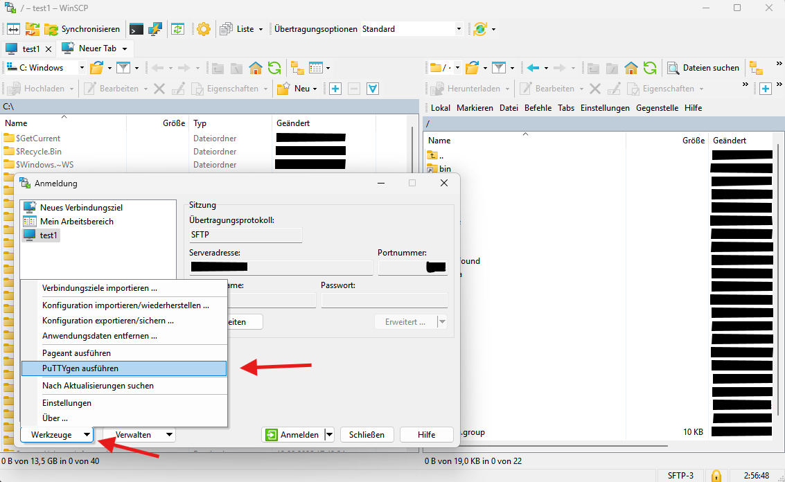 - Protokoll: SFTP – SSH File Transfer Protocol