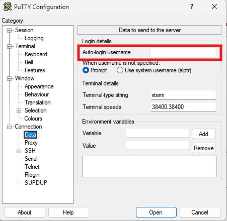 server.ihreserver.comoder Public IP(Server IP), Port:2222, Type:SSH - Connection → Data → Auto-login username: