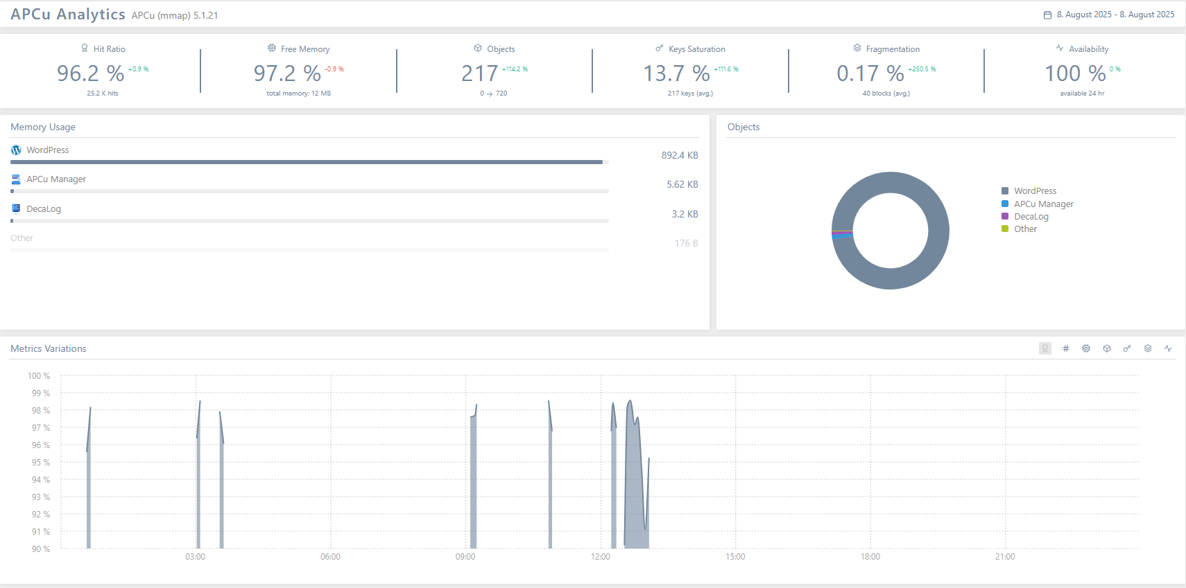 WordPress nutzt APCu nicht direkt. Mithilfe des Plugins APCu Manager kann jedoch die Nutzung von APCu überwacht und genutzt werden.